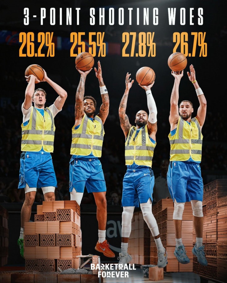 蓝球日报11月12日播报讯 独行侠本赛季的三分状态相当糟糕。全队除了克里斯蒂(45.3%)以及哈迪(36%)之外,其他球员的三分命中率都低于30%。要知道球队有包括克莱、拉塞尔在内多位外线准度不错的球员。球队三分命中率第三高的是拉塞尔的27.8%,随后依次是:浓眉27.3%,克莱26.7%,弗拉格26.2%,华盛顿25.5%,纳吉·马绍尔21.4%。而从产量来看,球队也只有克里斯蒂(2.6记)一人场均能够命中超过2记三分。