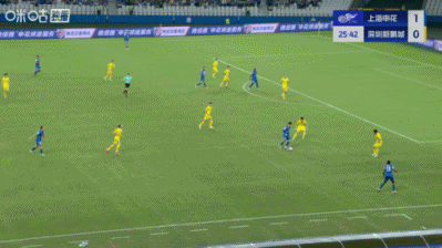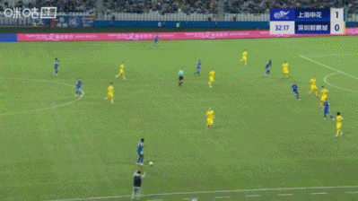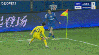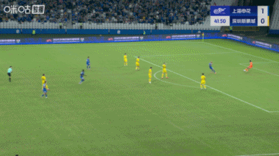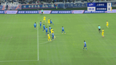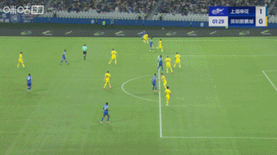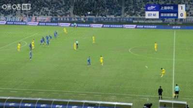 上半场补时3分钟,申花1-0深圳新鹏城。